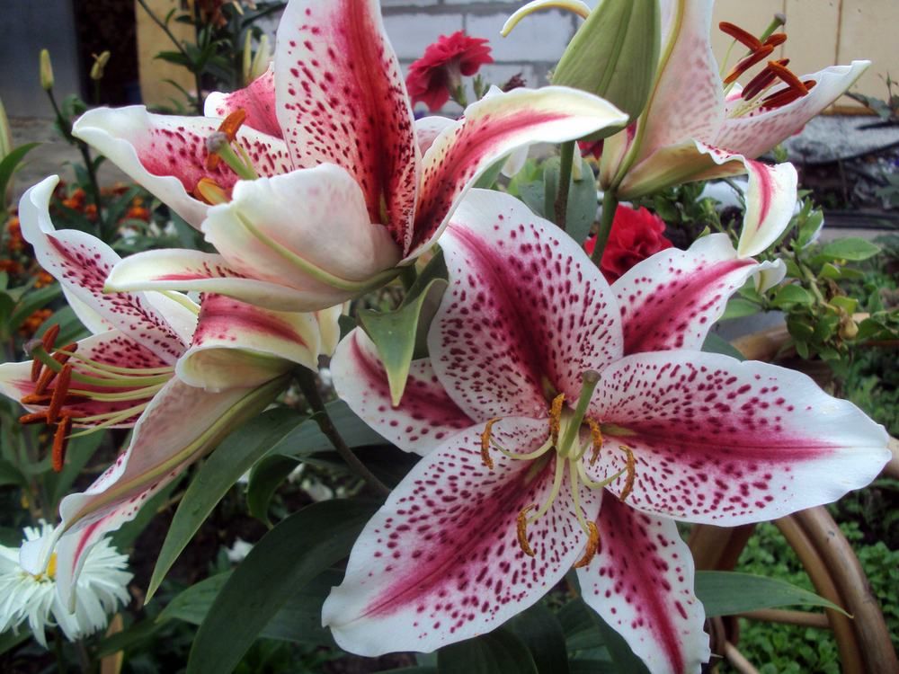 Очень рослая лилия вырастает выше 2 м, но ее цветы не столь крупные – до 17 см. Однако их отличает удивительная окраска малинового цвета или цвета фуксии с темными пятнами и белой каймой.