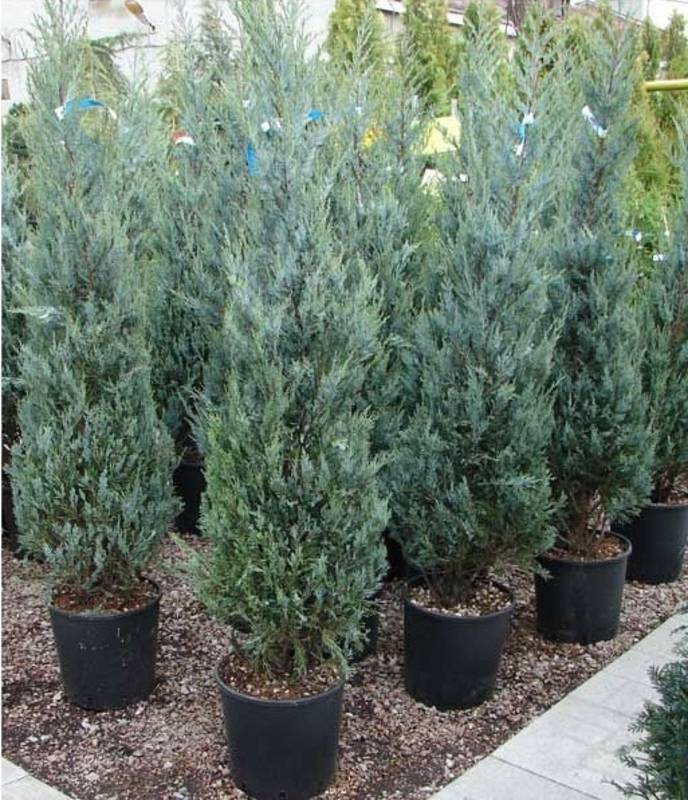 | Scyrocket | Вид представлен высокими (до 8 м) кустарниками колонновидной или конической формы с довольно рыхлой кроной. Относится к быстрорастущим – до 15-20 см ежегодного прироста. Хвоя чешуйчатая, короткая и острая, различных оттенков (серебристо-серая, голубовато-зеленая и др.). Шишкоягоды серо-голубые. Любит солнечный свет и хорошо дренированную почву. |