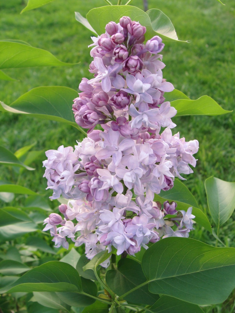Цветки нежно-лиловые, крупные, густомахровые – из трёх плотно расположенных венчиков, ароматные. Лепестки острые, почти ромбические. Метёлки узкие, плотные, длиной до 22 см.