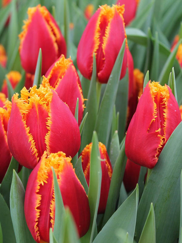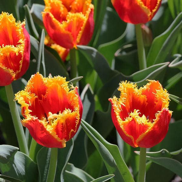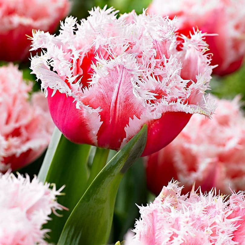 Этот сорт, также известный как тюльпаны хрустящие, известен своей тонкой бахромой и мягким, вычурным внешним видом. Их можно найти в розовом, красном, фиолетовом, желтом и белом цветах. У многих сортов цвет бахромы контрастирует с цветом цветка, что придает этим видам тюльпанов дополнительный оттенок экзотики.