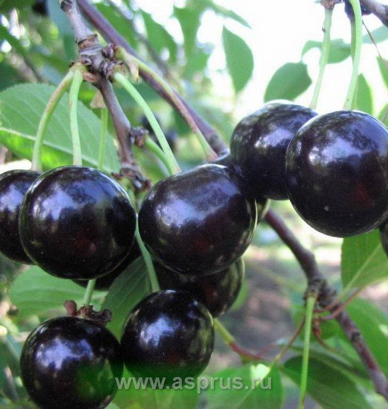 Вишня обыкновенная АнтрацитоваяКустообразная вишня с широкой кроной, максимальный ее рост составляет 2 метра. Кожица ягод темного, почти черного цвета, мякоть кроваво красного оттенка. Вес плодов составляет 4-5 грамм, вкусовые качества хорошие. Вишни созревают в середине лета и хорошо транспортируются. Сорт Антрацитовая устойчив к морозам, засухе и грибку.