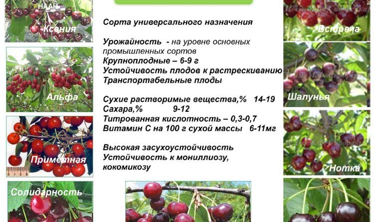 Также к самоплодным сортам вишни относится Гирлянда, Брюнетка, Золушка, Шоколадница, ЭрдиБетермо, Ксения, Ночка, Встреча и т.д.