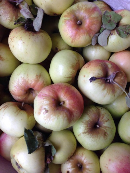 Яблоки среднего размера — 80 г, максимальный 140 г. Мякоть кремовая, нежная, отличного вкуса.
