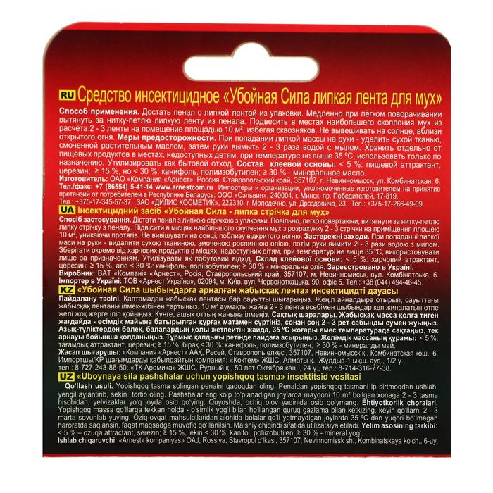Свои «клейкие» способности такая ловушка не теряет в течение двух месяцев, но в случае заполнения ленты насекомыми ее нужно заменить раньше. На 15 м² достаточно 1-2 ловушек. В основе ленты находится клеевой состав, который удерживает насекомых на своей поверхности. Данное вещество нетоксично, безопасно для аллергиков.