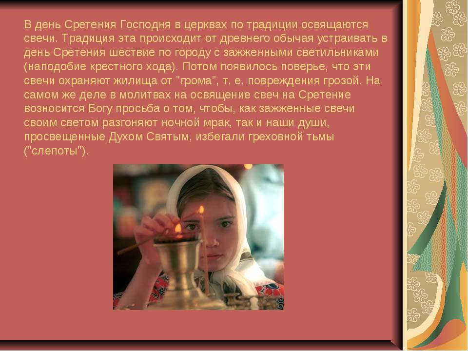 К сретенским свечам в Православной Церкви относились по-особенному — не магически, а благоговейно. Их хранили весь год и зажигали во время домашней молитвы.