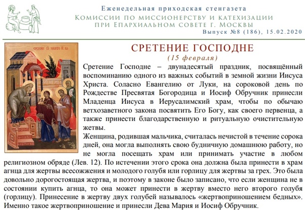 15 февраля мы вспоминаем события, описанные в Евангелии от Луки.