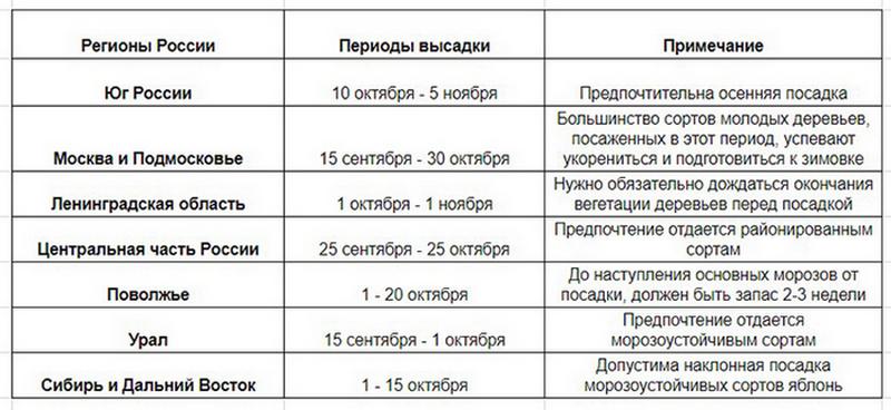 Сроки посадки яблонь