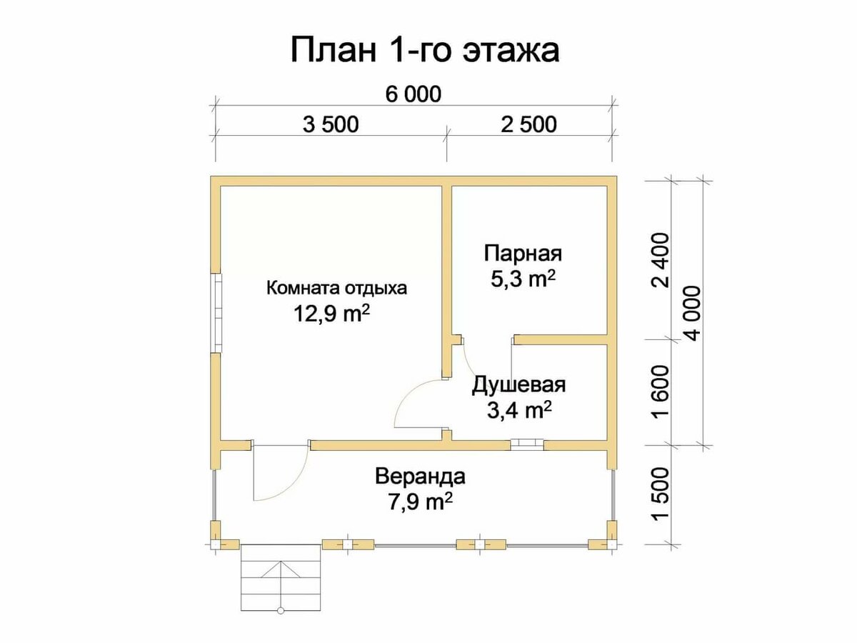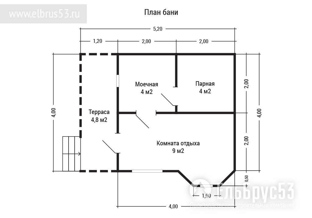 Индивидуальный проект бани из клееного брусаИсточник 9ban.ruПарная