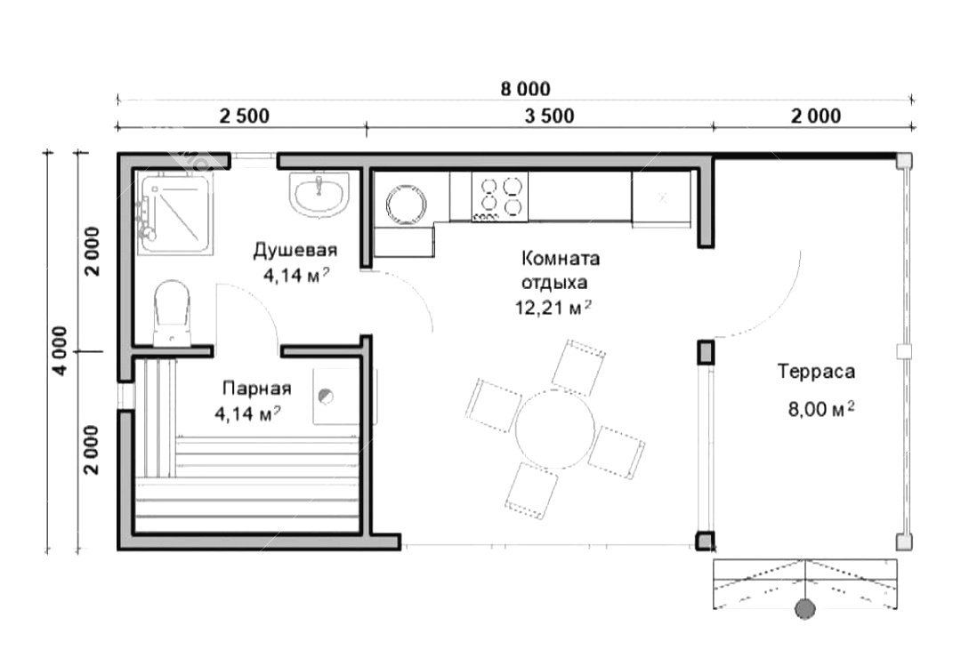Оптимальные размеры бани на 4 человекаИсточник pinterest.comМебель для бани