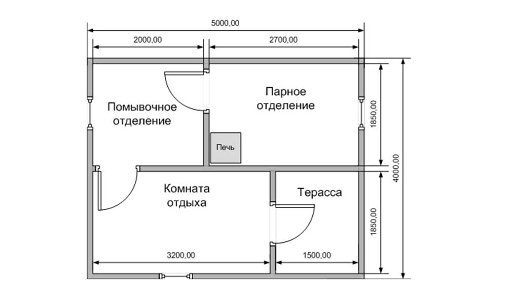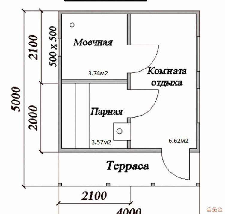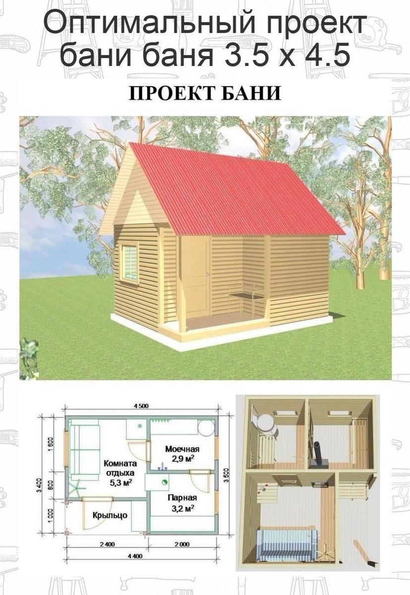 Придерживаясь всех вышеперечисленных рекомендаций, оптимальные размеры бани варьируются от 3 х 3,5 м до 5 х 6 м.