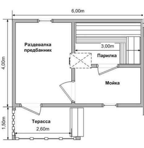 В большинстве случаев предбанник имеет место для хранения дров и мебель для отдыха после парной. Независимо от размеров и типа бани, её проект составляется так, чтобы предбанник был тем местом, откуда можно попасть в остальные помещения: парилку, моечную, уборную.