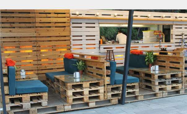 Вот идея удивительного дивана для патио. Цвет поддонов светло-коричневый, а граница окрашена в черный цвет, чтобы диван выглядел привлекательно. Комбинация выполняет свое предназначение, и дизайн также уникален. Кушетка на четырех ножках отлично подойдет как для террасы, так и для творческой личности.