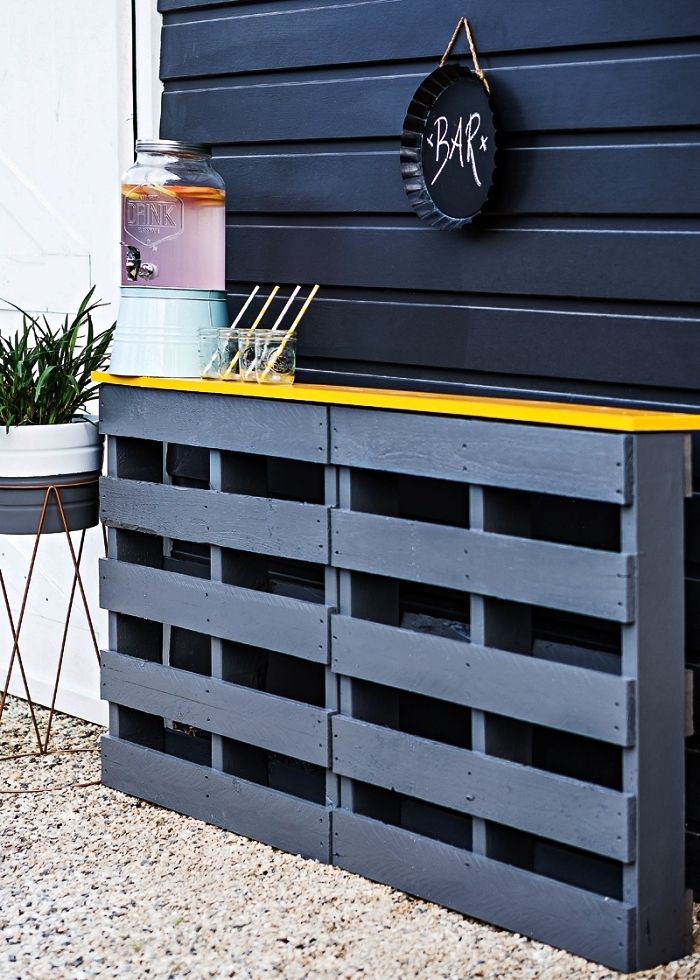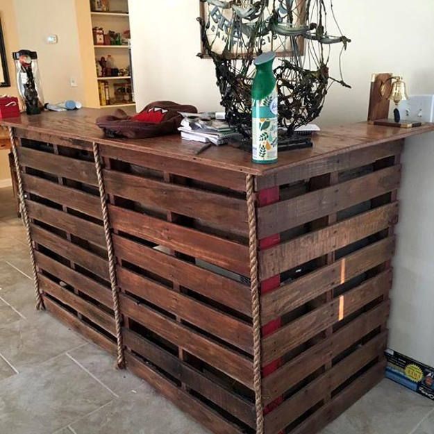 Давайте начнем с идеи поддона из вторичного дерева. План бара для тех, кто хочет организовать в своем доме специальную зону для питья.