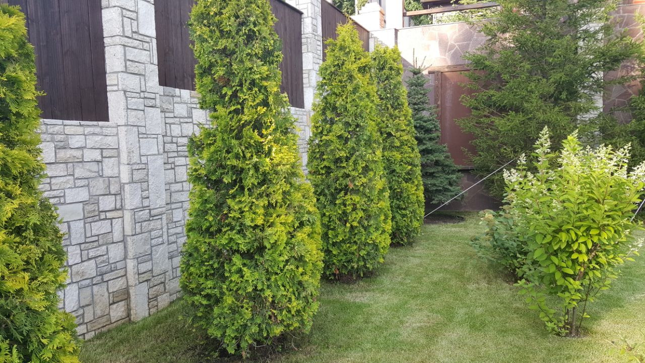 Туя колумна быстрорастущая — вырастает до 20 см в год. Хорошо поддается лепке и различным декоративным стрижкам топиариев.