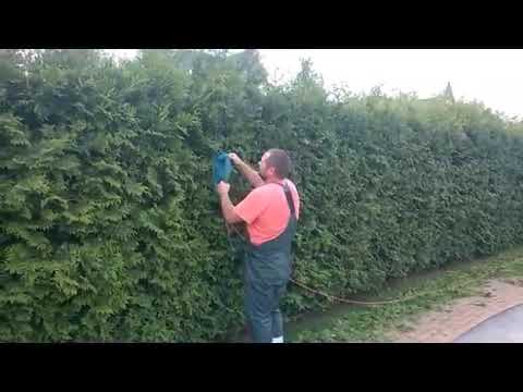 Для того чтобы сформировать живую изгородь из туй, их нужно высадить плотным рядком, затем, укоротить на 30% верхушки ростков. На следующий год верхушки надо будет немного подравнять. Что спровоцирует более активный рост боковых побегов и изгородь «сомкнется» быстрее.