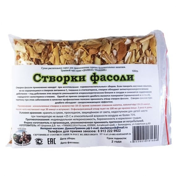 В народной медицине может использоваться фасоль, створки которой обладают многими полезными свойствами. Как только будут удалены зерна, створки досушивают, измельчают и, если возникает такая необходимость, перемалывают. Их также можно купить в готовом виде, причем в разных вариантах расфасовки.