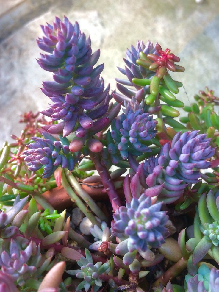 Разновидность очитка из Японии с красноватыми стеблями и круглой сине-серой листвой с фиолетовыми краями.