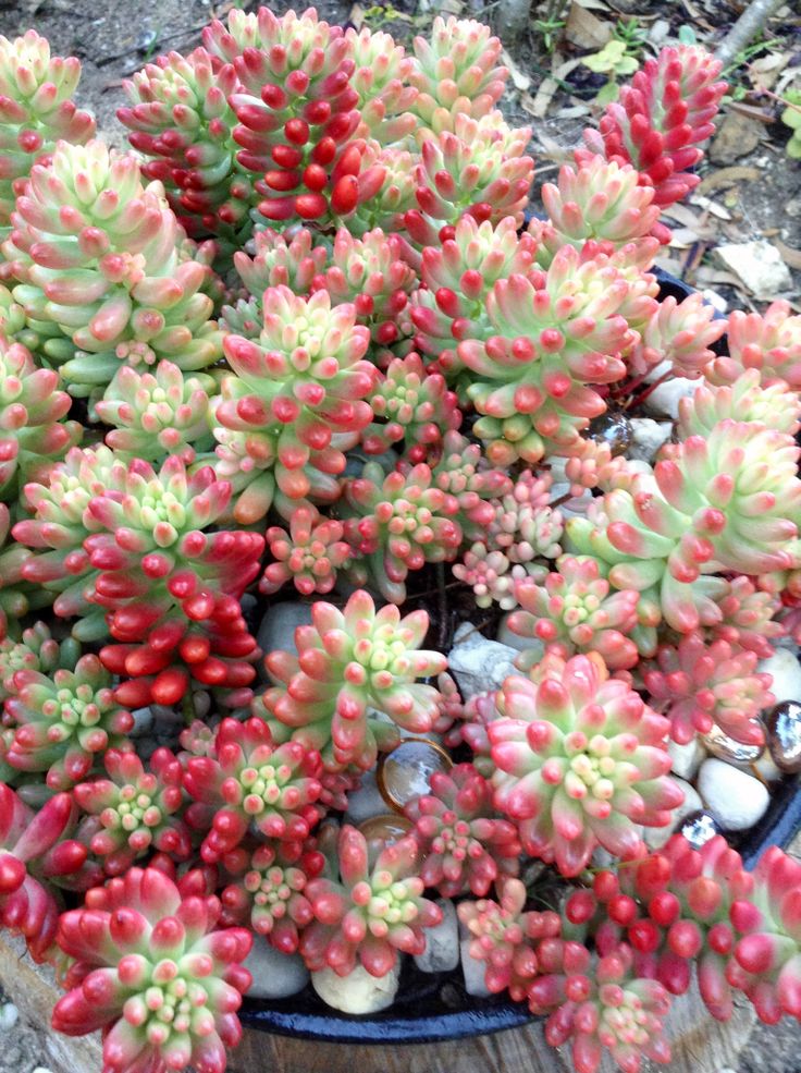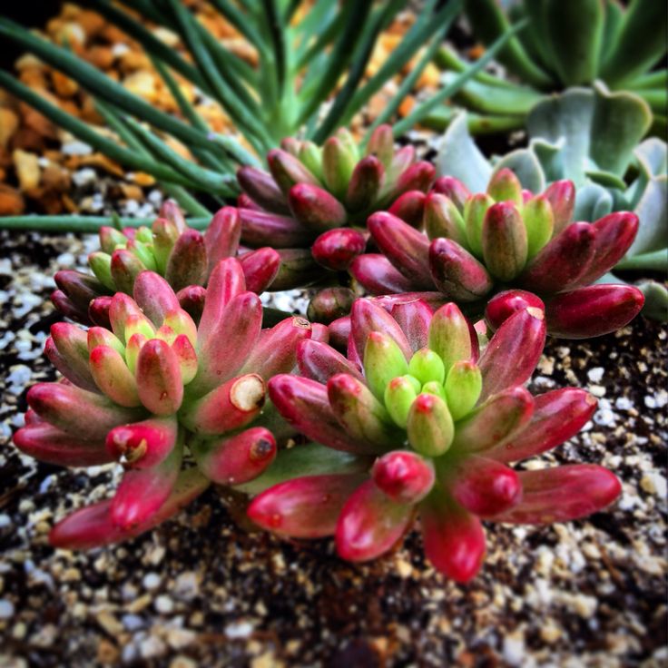 Представляет собой низкую сочную листву от зеленого до рубиново-красного цвета. Гроздья красных звездообразных цветов добавляют интереса. Лучше всего растет на хорошо дренированной, гравийной почве, не переувлажненной зимой. Засухоустойчивый. После укоренения требует немного воды.