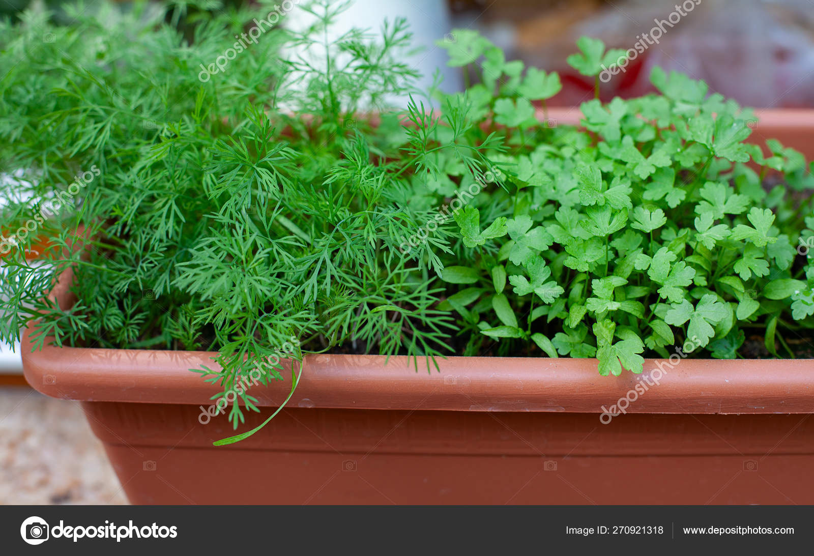 Зелень петрушка на подоконнике. Фото