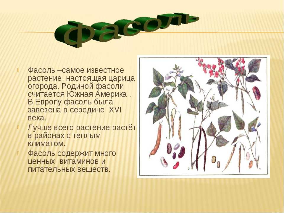 Фасоль содержит большое количество крахмала и других углеводов, белков.