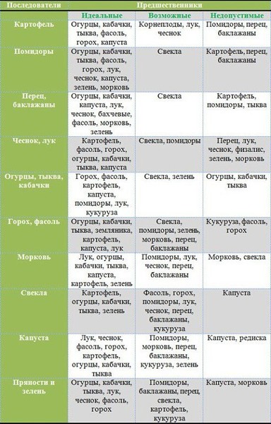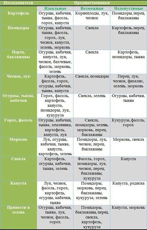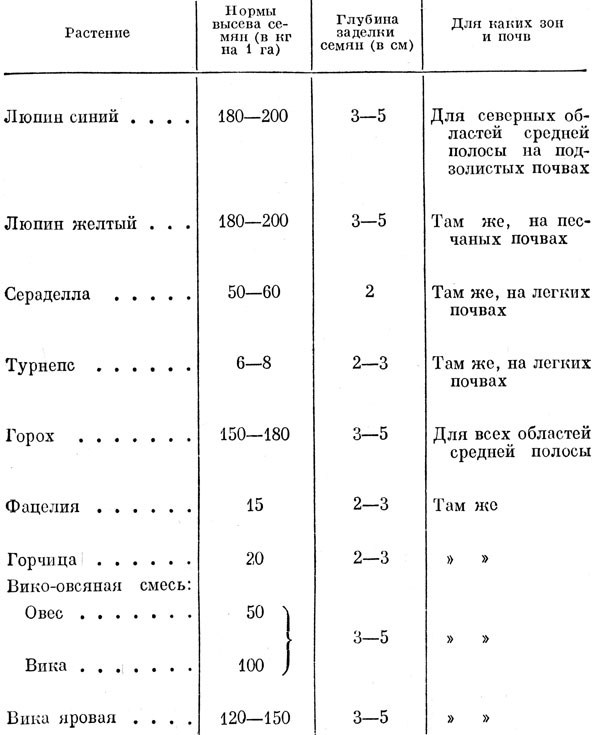 Сидераты: календарь посевов. Таблица-памятка севооборота сидератов