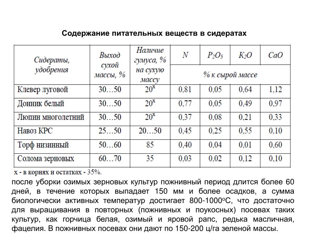 В случае сидератов акцент делается на внесении в почву органических веществ, а иногда и азота, но эти вещи также могут требоваться от покровной культуры.