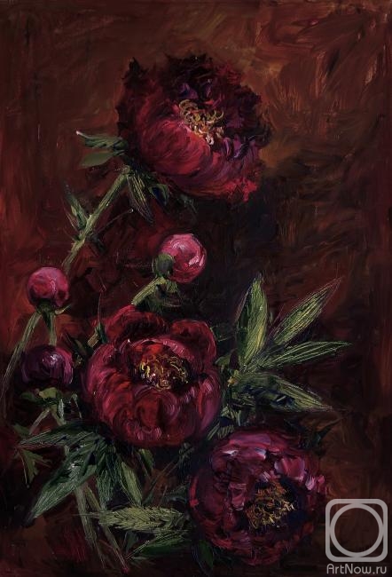 фаворит среди японских пионов на любых выставках. Выделяется этот пион среди других своими блестящими соцветиями темно-красной окраски с легким шоколадным оттенком. Узкие стаминодии имеют красно-лиловый цвет с желтым краем. Внешние темные лепестки в сочетании с позолоченными стаминодиями придают этому пиону особую оригинальность. Срок цветения — ранне-средний.