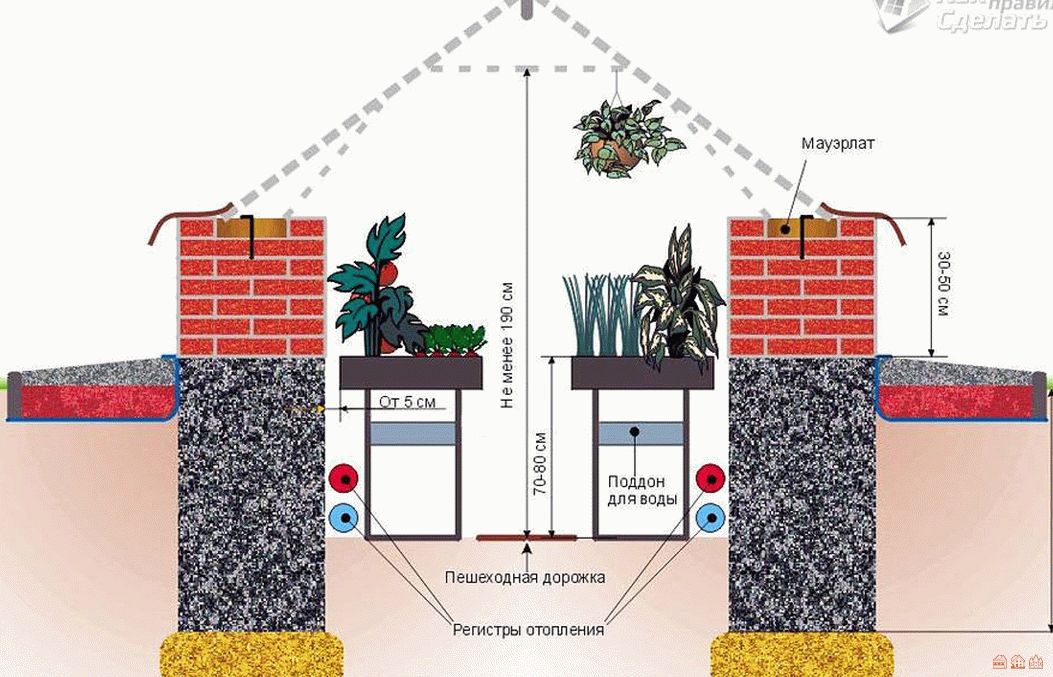 При разработке чертежа стоит учитывать также функциональность помещения. Это зависит от средств, которыми располагает владелец, а также его желаний и планов на теплицу.