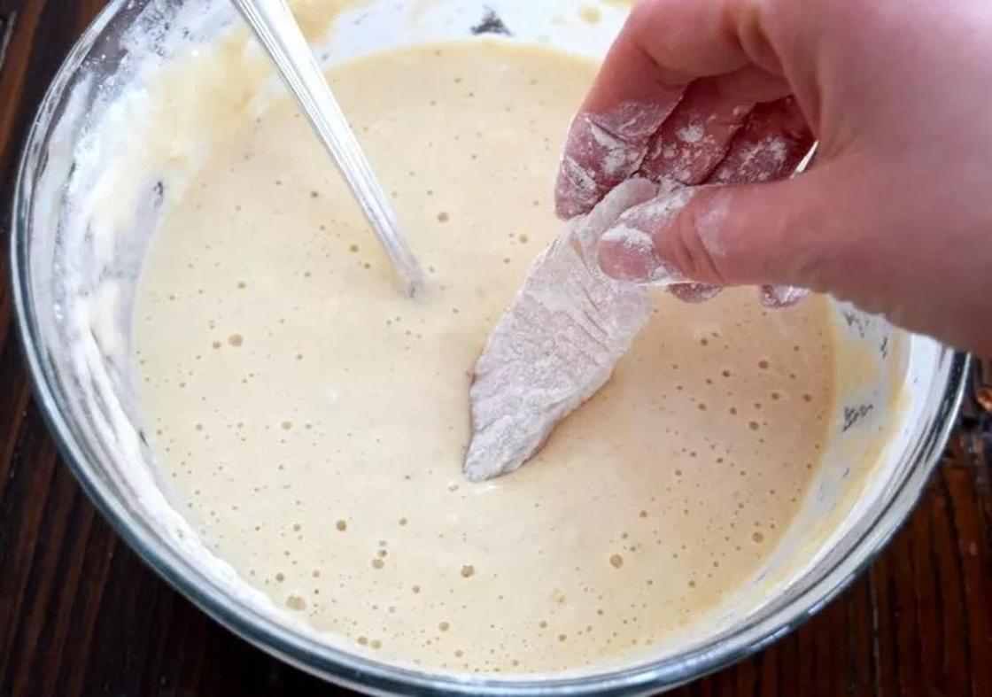 Положите филе в кляр и оставьте в холодильнике на 20–30 минут.