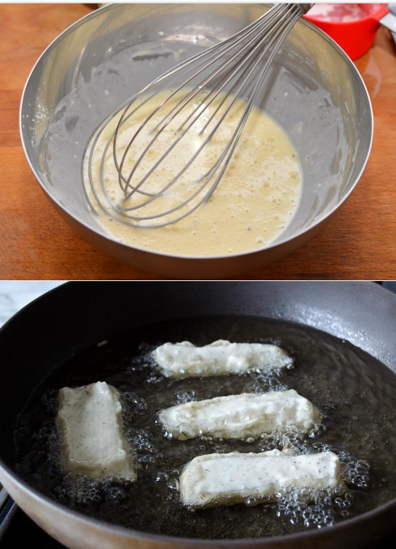 Оно должно быть тоньше, чем тесто для блинов, но немного толще, чем тесто для блинов. Неплотно накройте полиэтиленовой пленкой и дайте постоять при комнатной температуре не менее 30 минут.Нарежьте филе трески на полоски (6 дюймов). Промокните рыбу бумажным полотенцем, чтобы она полностью высохла.