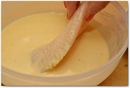Еще раз все перемешайте до однородности. Взбивать совершенно не нужно, достаточно просто хорошенько перемешать венчиком. Дайте постоять пять минут и наш кляр готов для приготовления рыбы.
