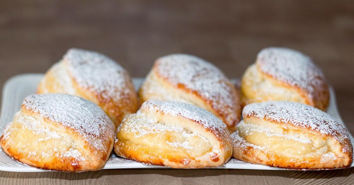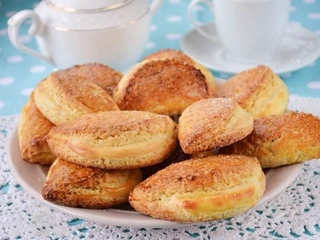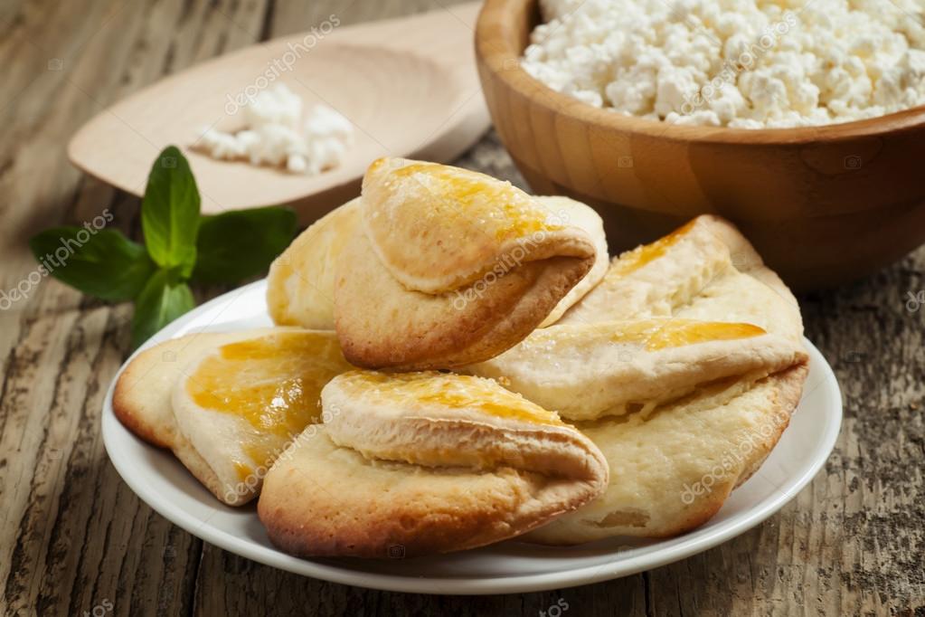 Выход: творога теста хватит примерно на 10 отдельных пирожных или 8 роговых булочек (см.