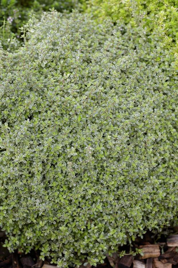 Тимьян относится к роду, состоящему из более чем 300 видов выносливых многолетних травянистых растений и кустарников, произрастающих в Европе, особенно в Средиземноморье. Теперь они распространились по всему миру, в Америке и даже на севере, до Исландии. Некоторые из них простертые и образуют коврики; другие могут вырасти до 30 см (12 дюймов) в высоту, и к ним относятся T. citriodorus, тимьян с ароматом лимона. T. vulgaris, или тимьян садовый, используется в основном в кулинарии: у него узкие маленькие листья темно-зелено-серого цвета и пучки трубчатых розовато-лиловых цветов.(Другие цветки тимьяна различаются по цвету от белого до бледно-розового и сиреневого до темно-красного.) Все листья ароматные, у культурных растений — в большей степени, чем у диких; и те, что выращиваются в теплом климате, всегда более мощны, чем те, что выращиваются на холодном и влажном севере. T. Membranaceus, сорт, произрастающий в Испании, является самым ароматным, также есть тимьян с ароматом тмина и апельсина.