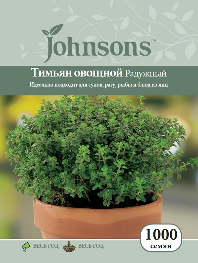 Имеющиеся в продаже семена разнообразных сортов чабреца (тимьяна) подойдут как для открытого грунта, так и для выращивания в комнате на подоконнике. Растения украсят комнату или сад, а свежесорванные листики и побеги придадут чудесный аромат блюдам и напиткам и найдут применение в рецептах народной медицины.