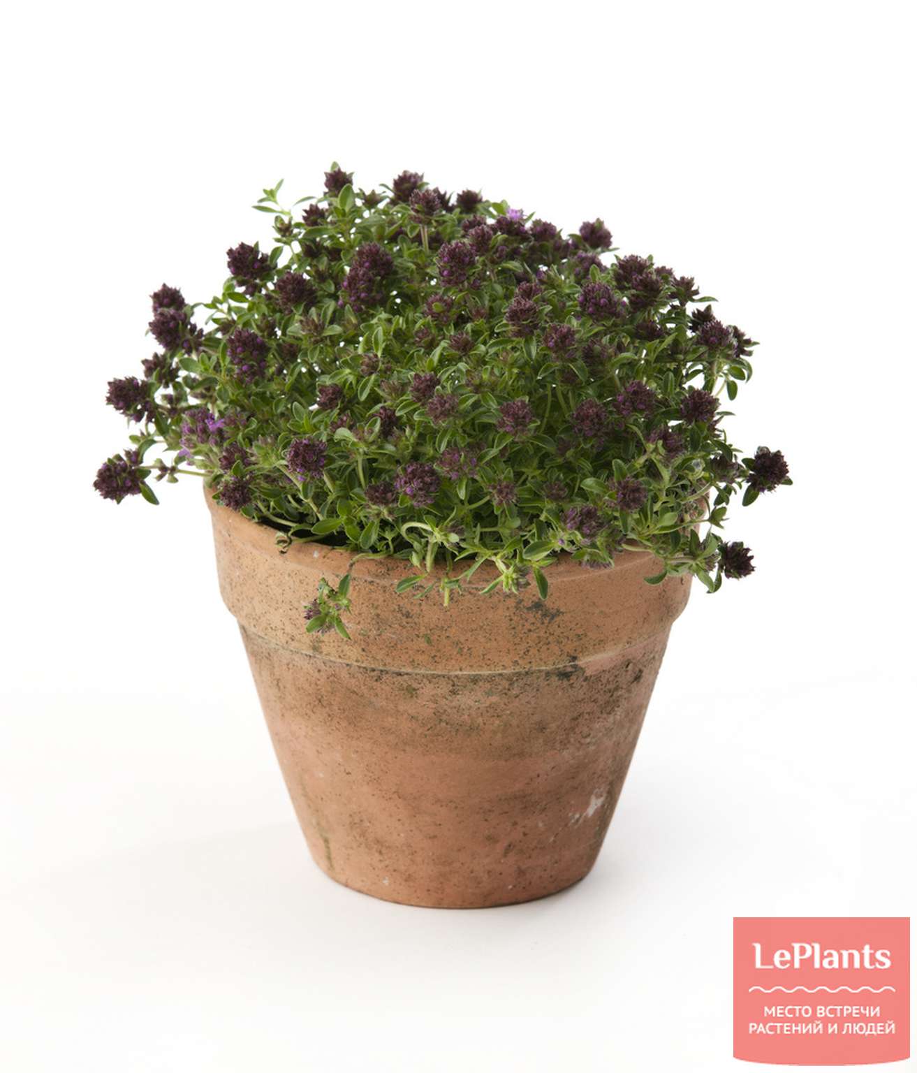 У тимьяна мощная корневая система, которая обычно немного больше надземной части. Как правило, горшок на 4 литра хорошо подходит для одного взрослого растения. Убедитесь, что в горшке есть хотя бы одно дренажное отверстие внизу.