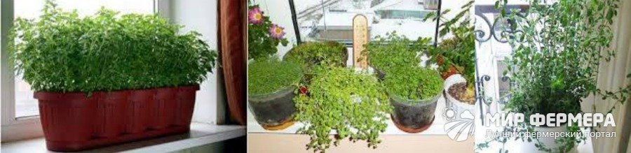 Выращиваемый в горшке, эта пряная травка отлично чувствует себя на солнечном подоконнике или лоджии, там, где хорошее проветривание.