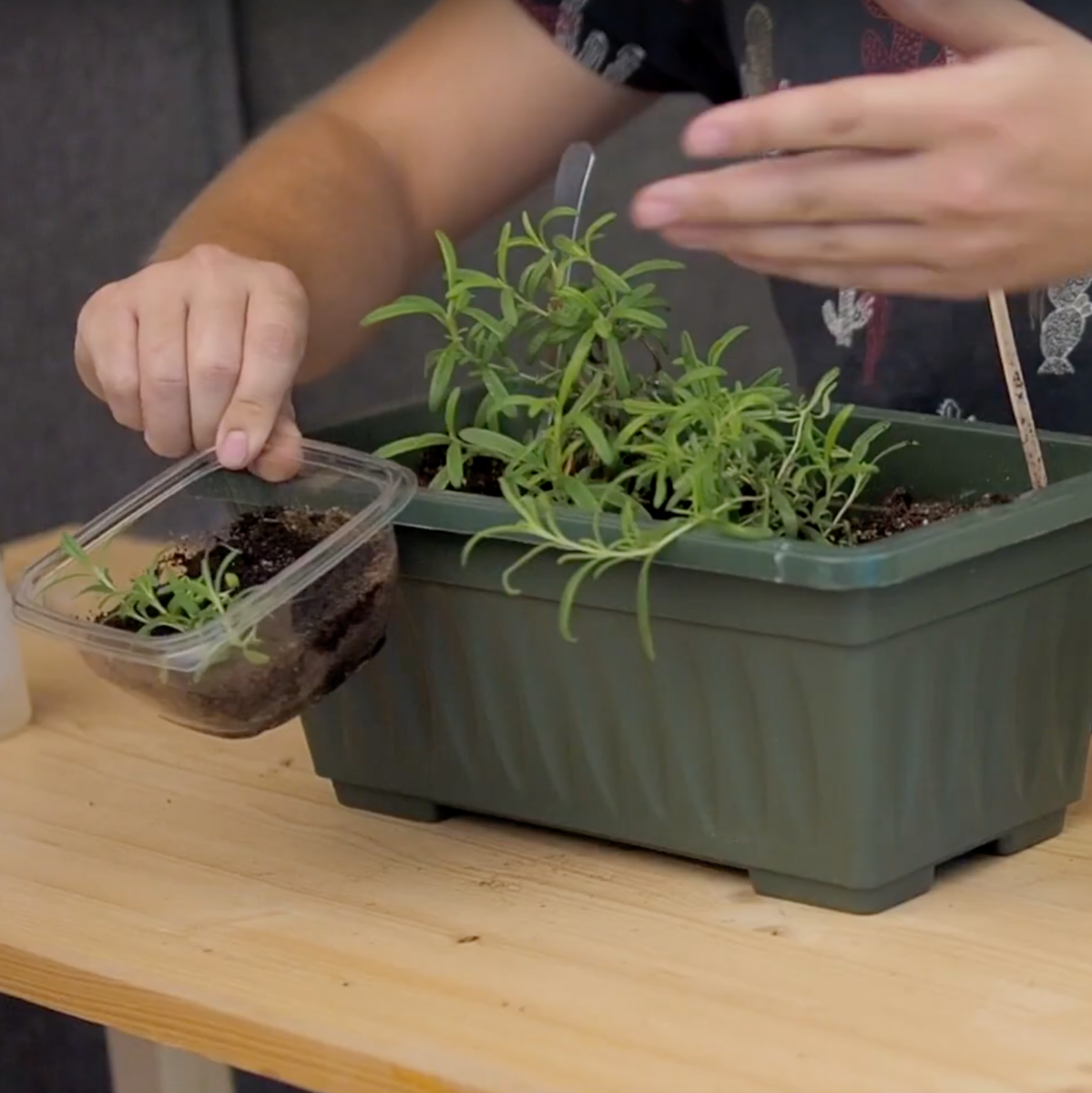 Выберите горшок или емкость больше, чем корневой ком, чтобы у них было место для расширения.
