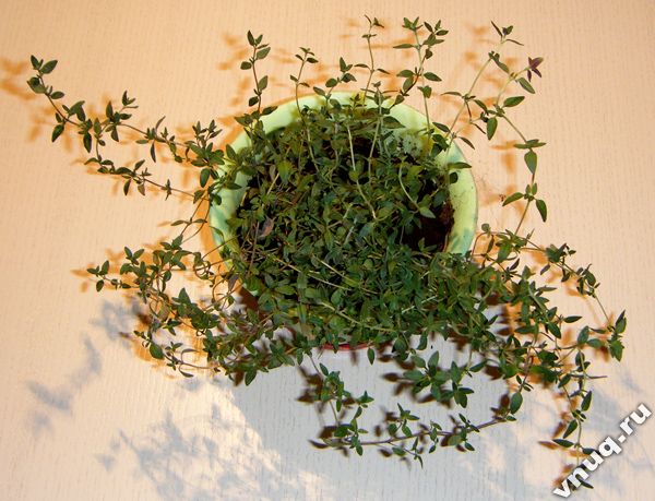 Рекомендуется поливать очень умеренно, стараясь на переувлажнять растение, но и «сухой паёк» его тоже не садите.Самый лучший выбор для выращивания тимьяна в домашних условиях – это южное окно квартиры.