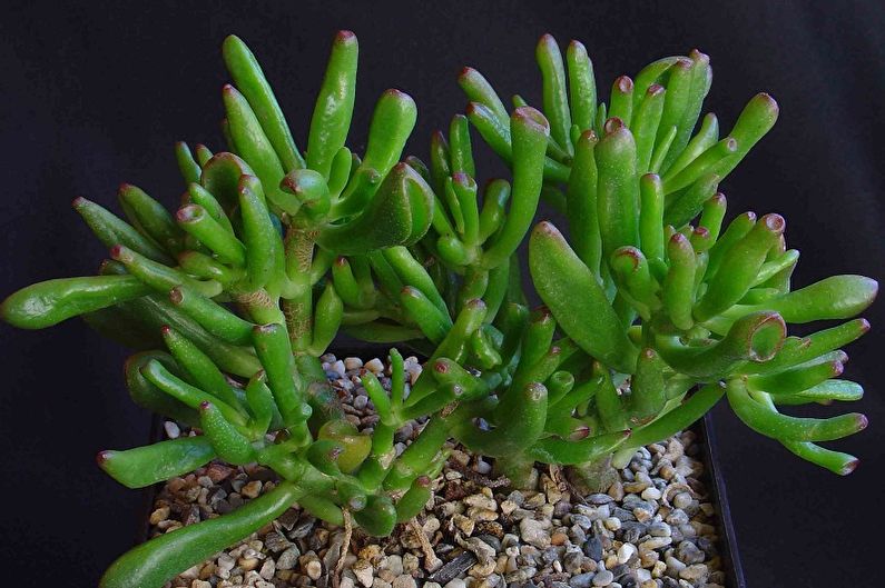 Частая пересадка запрещается, ведь подобную процедуру можно проводить только в случае чрезмерного разрастания или нахождения в одном грунте в течение 3 лет. Самим процессом нужно заниматься весной, а в качестве обновленной почвы подойдет покупная земля для суккулентов или кактусов. Щебень в данной ситуации воспринимается как идеальный дренаж для выкладки на дно. Формировка кроны заключается в обрезке сухих или чрезмерно разросшихся веток.