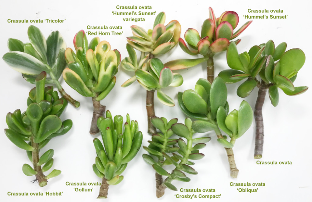 ● цвет листьев зависит от вида толстянки, поэтому иногда они красные, серебристые, зеленые или пятнистые;