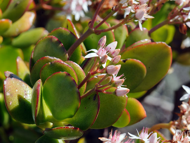 Денежное дерево в природе цветет весьма обильно, покрываясь мелкими цветочками, имеющими чисто белый цвет, но иногда оттенок цветочков может быть розоватым или зеленоватым. Диаметр одного цветка не превышает 1 см.