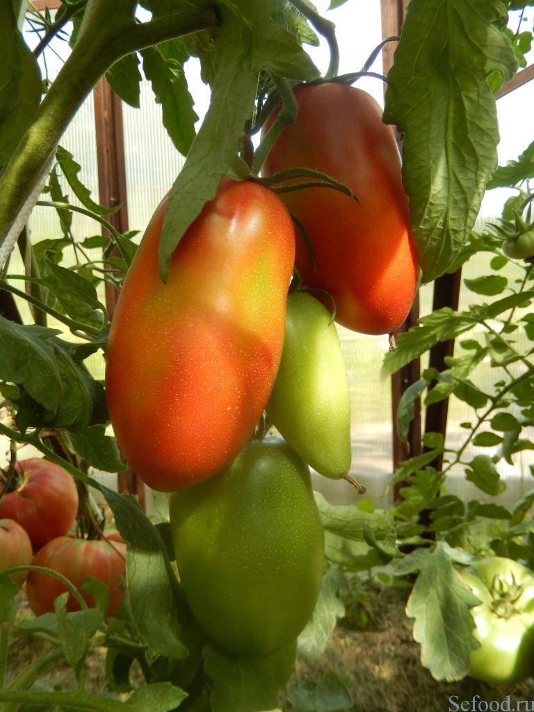На квадратном метре размещают три растения, при этом их еще и удобно обслуживать. Первая кисть появляется над 12 листом, а затем — с интервалом в 3 листа. Кисти содержат по 5-6 плодов.