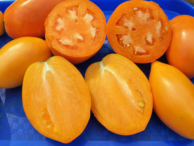Этот сорт считается одним из самых вкусных. Это настоящий рай для ценителей желтых томатов. Крупные плоды сочного янтарного цвета по форме напоминают сливу, имеют пониженную кислотность и могут быть рекомендованы для детского и диетического питания.