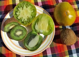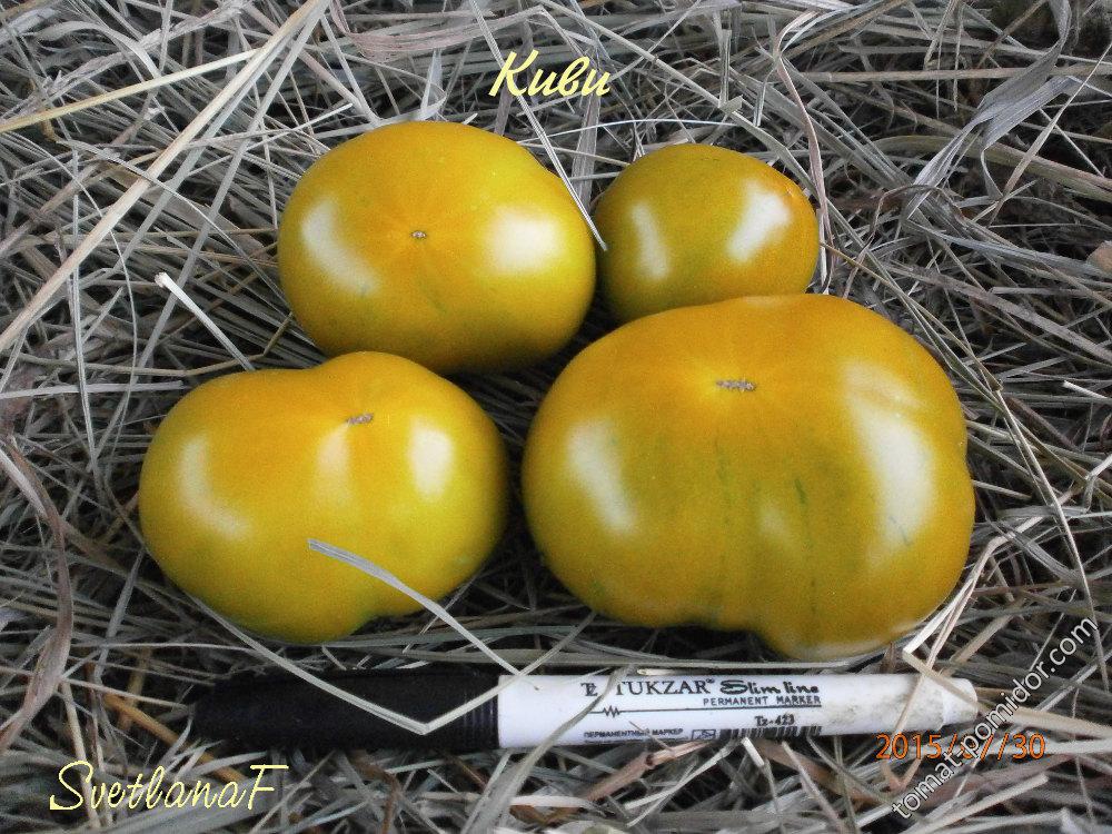 Отменные вкусовые качества имеет сорт «Киви». Плоды получаются сладковатыми, они даже напоминают многим людям сам тропический фрукт, откуда и пошло название этого вида томатов.