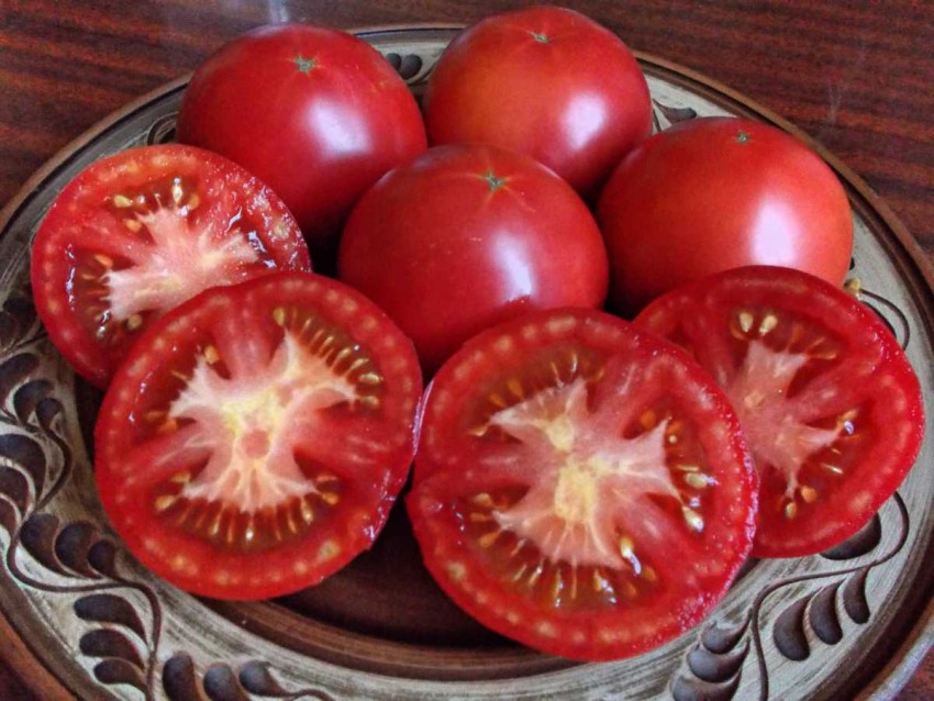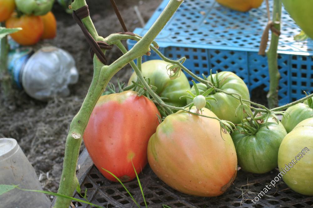 Определитель, до 1 м (в теплицах — до 1,5 м). Среднеранний (106-110 дней). Плоды сердцевидные, розовые, массой 300-600 г, с восхитительной сладкой мякотью. Склонен к формированию «зеленых плеч».