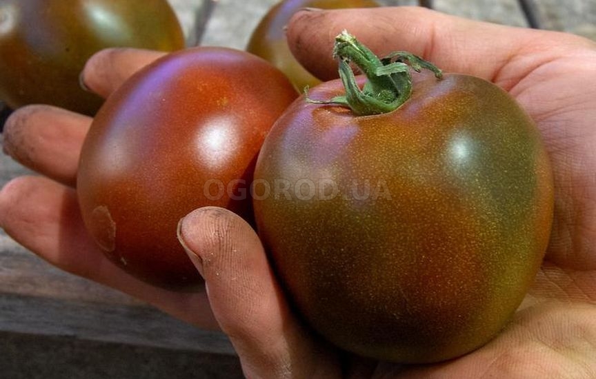 - Помидоры гладкие, округлые, среднеплотные, черно-коричневые. Вкус отличный.