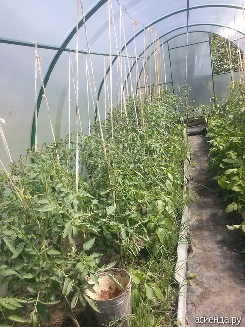 Выращивая томаты в поликарбонатной теплице, не забывайте, что низкорослые растения формируют несколько пасынков. Необходимо формировать ступенчатый стебель или оставлять два полноценных стебля для увеличения срока вегетации тепличных помидор.