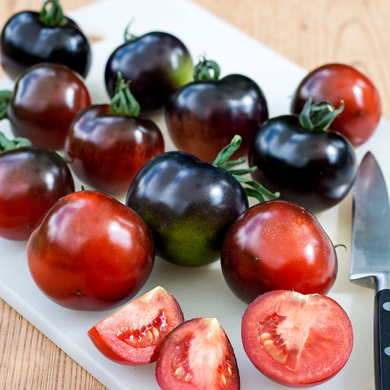 Томаты фиолетового и черного цветов обладают массой преимуществ перед красными и желтыми разновидностями. В необычный цвет окрашена не только шкурка, но и мякоть. Оттенок может варьироваться от светлого шоколадного до фиолетового, практически черного.