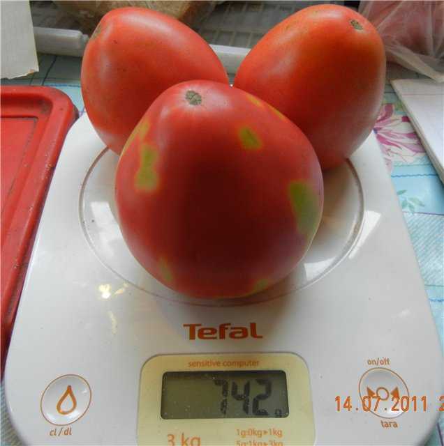 В первой сформированной кисти масса плодов может достигать 800г, в последующих плоды становятся немного мельче, но 400 г в верхних кистях плоды достигают.