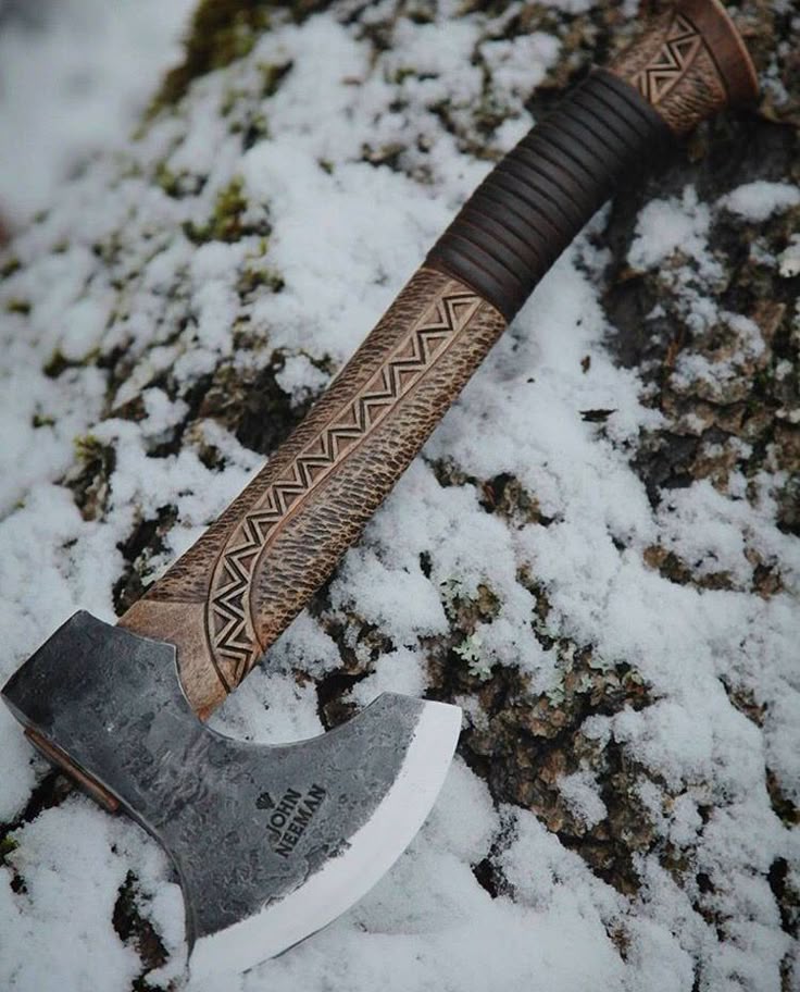 Такой топор, как и его многочисленные сородичи – это инструмент как для бытовых работ, так и для боя. Для норвежцев, чьи легкие челны не позволяли брать с собой избыток поклажи (ведь надо еще оставить место для награбленного добра!), подобная универсальность играла весьма важную роль.